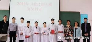 2019年4月19日下午1时,由教务处主办,口腔教研组承办的第四届雕牙大赛颁奖典礼在38-2-3教室隆重召开。出席典礼的领导有张肇达校长、郭秋农常务副校长、蒋润书副校长、周宏庆副校长、宋江洪副校长、教务处郑道勇处长。口腔教研组老师、口腔班主任老师和2017级、2018级口腔班全体同学共同出席典礼,颁奖典礼由郑道勇处长主持。